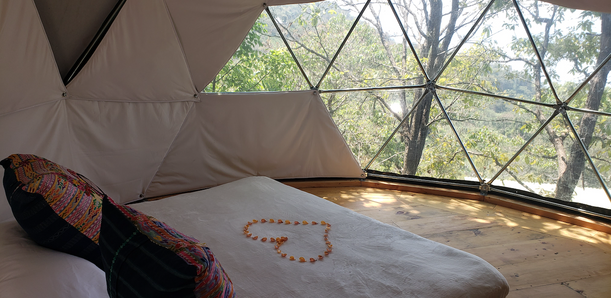 Choose between traditional bamboo & natural adobe cabañas overlooking the lake and Geodesic domes with incredible views of the volcanos at day and clear starry skies at night.